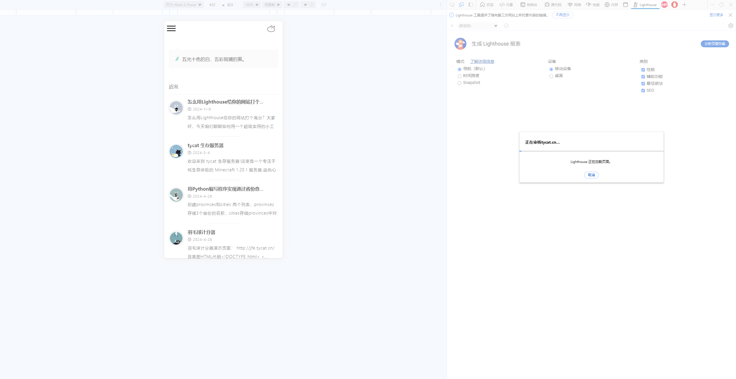 - 开始生成报告:点击“生成报告”按钮后,Lighthouse会开始对当前页面进行全面分析。这个过程可能需要几分钟时间,具体取决于网页的复杂程度。