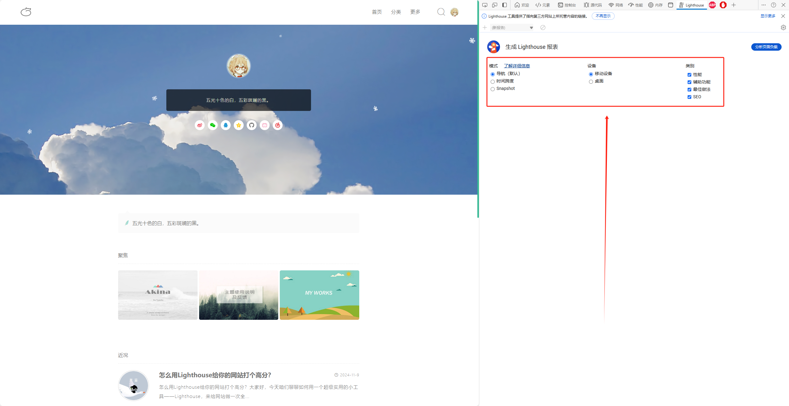 - 切换到Lighthouse标签页:在开发者工具窗口中,你会看到几个不同的选项卡,找到并点击“Lighthouse”。